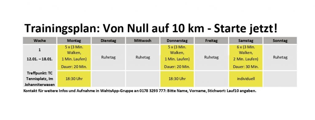 Trainingsplan: Findest Du Woche für Woche hier unten auf der Seite