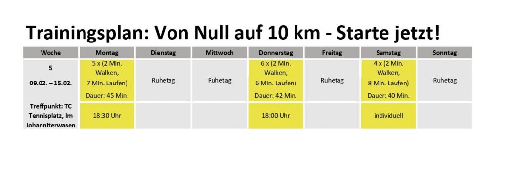 Der Trainingsplan für die Woche 5
